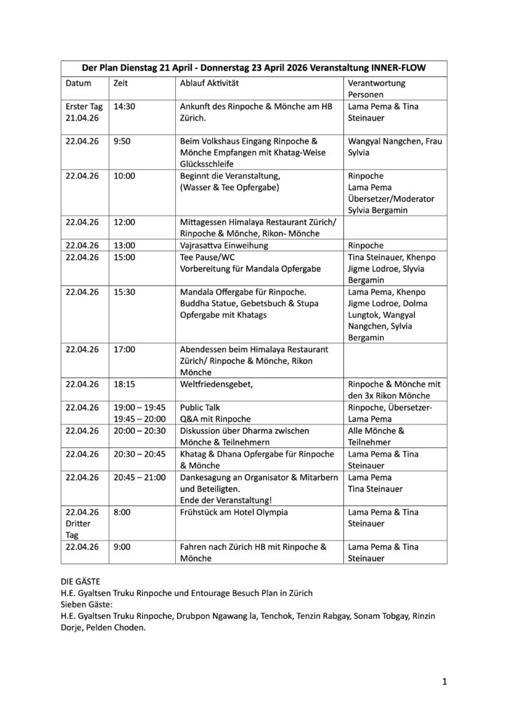 Seine Eminenz Kyabje Gyaltsen Trulku Rinpoche besucht Zürich Schweiz! Sein Ankunft bis Abreise Datum: 21 April bis 23 April 2026